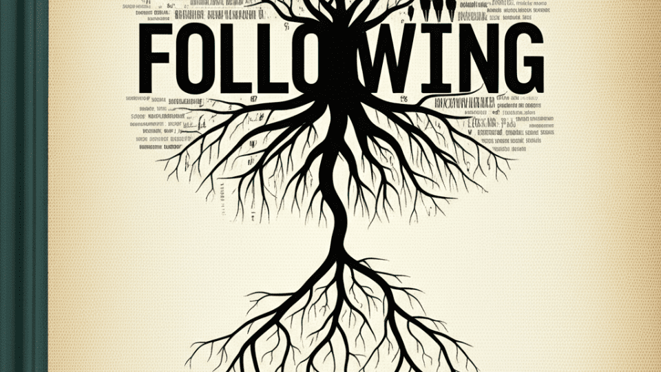 ภาพประกอบหนังสือปกที่มีคำว่า following พร้อมรากศัพท์ที่แผ่ขยายไปยังความหมายและรูปแบบต่างๆ
